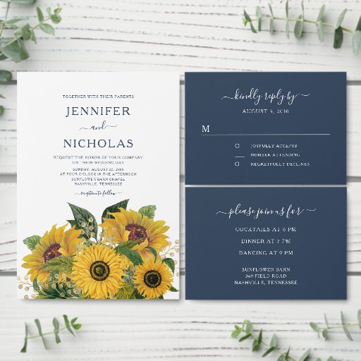 Elegant Floral Sunflowers Navy Blue Wedding SuiteDesignt von Maggie B Design
