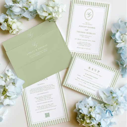 Sage Green Striped Wedding CollectionDesignt von Juno Designs