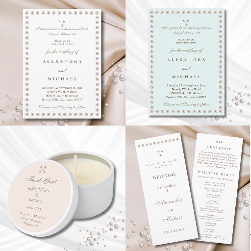 Elegant Pearl Christian Wedding Details Begleitkarte
