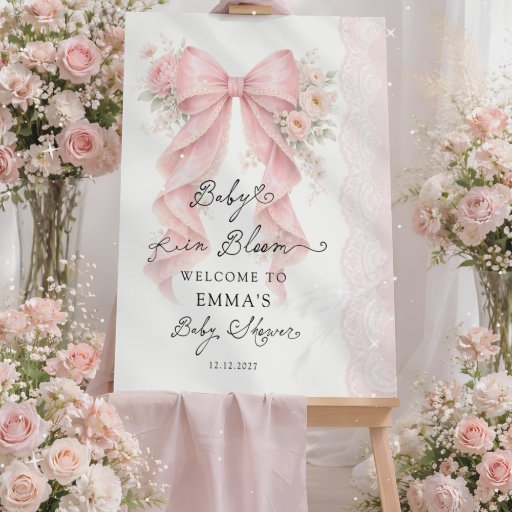 Pink Bow Floral Vintage Lace Baby ShowerDesignt von Katsiaryna Lukyanava