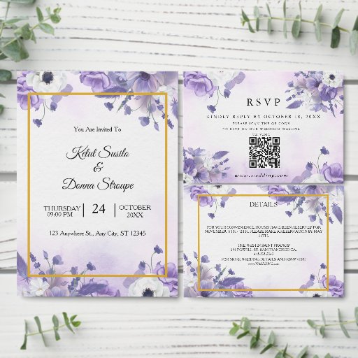 Elegant Purple Watercolor wedding Einladung