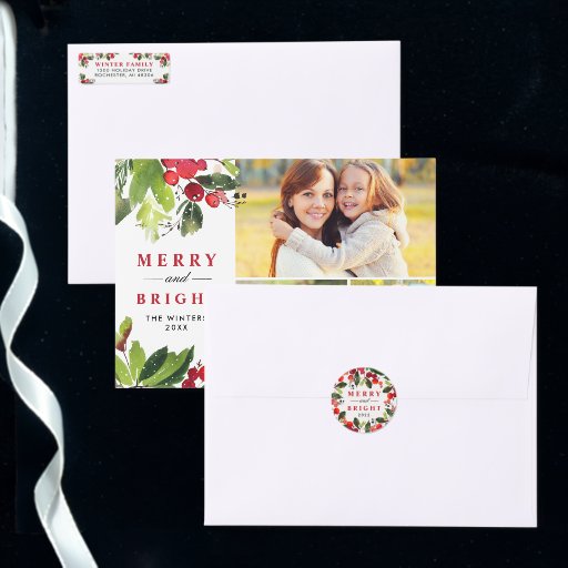 Red Watercolor Greenery Holiday CardsDesignt von Kat Fusinski