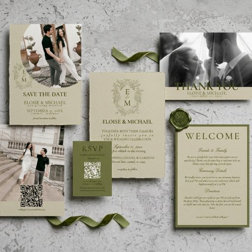 Elegant Sage Green Crest Monogram Wedding Designt von Molly H