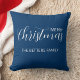 Elegantes, einfaches, sauberes, Midnight Blue Christmas Throw Kissen mit personalisiertem, handgeschriebenem, stylishen Text. Mitternachtsblau, nachts an den Winterhimmel erinnert, ist die perfekte Farbe für Weihnachten.