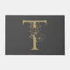 Elegant T Boho Floral Monogram Initial Gray Gold Doormat