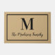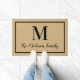Schalten Sie Ihren Zuhause mit dieser eleganten, maßgeschneiderten Monogramm-Doormat in neutraler Naturbräune und schwarzer Farbgebung auf. Hinweis: Die Farben können geändert werden. Personalisieren Sie mit dem Nachnamen Ihrer Familie im Skript und einem Serifenstil Monogramm Initial. Das Design umfasst einen gerahmten Rahmen.
