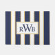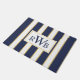 Fügen Sie Ihrem Eingangsbereich eine Touch stilvoller Eleganz mit dieser speziell gestreiften Monogramm-Matte hinzu. Das einfache Design weist Streifen in Blau und Weiß mit goldenen Akzenten auf. Personalisieren Sie mit einem dreiteiligen Monogramm in einer traditionellen blauen Typografie