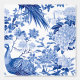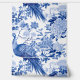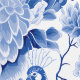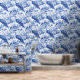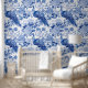 Schnell und einfach transformieren Sie Ihre Wohngestaltung mit dieser schalen und klebhaften Tapete, die ein wunderschönes, blau-weiß-toile de jouy-Muster aus Pfauen und Blume aufweist.