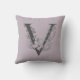 Elegant V Boho Floral Monogram Initial Lilac Gray Throw Kissen
