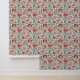 This wallpaper features stylized floral motifs in deep pink and aqua, outlined in soft golden tan against a parchment-toned, woven-look background. The layout echoes vintage textile traditions with Jacobean and block print influences, offering both rich detail and soft texture. Decorative yet refined, this botanical wall pattern brings warmth and color to any space—perfect for accent walls, reading nooks, or cozy bedrooms. A timeless design for vintage-inspired or eclectic interiors.