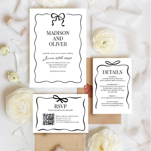 Elegant Whimsical Black Bow Tie Monogram Wedding Menu