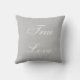 Elegante, wahre Liebe auf silbernen Kissen. Kissen in Grau und Weiß. Wahrer Liebestext kann personalisiert sein.