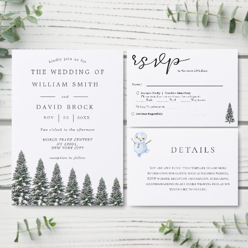 Elegant Winter Wonderland Snowboardfahren Hochzeit Begleitkarte