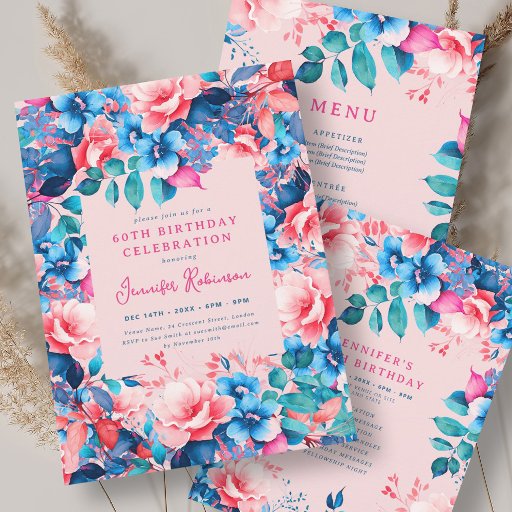 Bright Watercolor Floral 60th Birthday Set BlushDesignt von Marta Burton