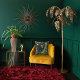 Mit diesem im Jugendstil inspirierten Kissen, das eine majestätische, von fließenden goldenen Weinreben und zarten Blume gerahmte Pfaue bietet, verleihen Sie Ihrer Zuhause zeitlose Eleganz. Ein perfekter Akzent für alle, die Vintagen Charme und romantisches Design Lieben.
