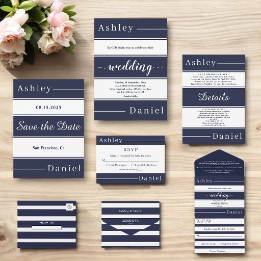 Modern Chic Navy Blue White Stripes WeddingDesignt von Mohamed Sherif