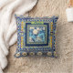 Elegante bläuliche Kachelblume Chinoiserie Monogra Kissen