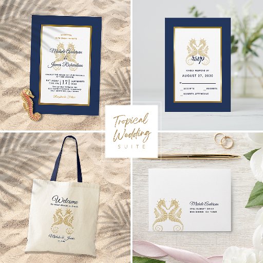 Elegant Navy Gold Seahorses Tropical Wedding SuiteDesignt von Laura C.