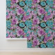 Dieses Produkt zeichnet sich durch ein elegantes Blumenmuster auf schwarzem Hintergrund aus - blau, rosa, grün.