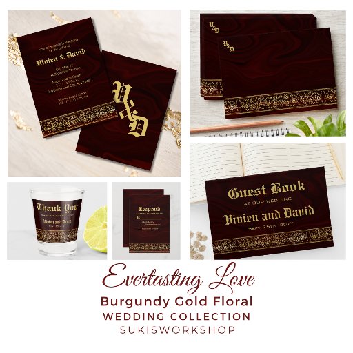 Everlasting Love - Burgundy Gold Floral WeddingDesignt von Suki's World
