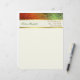Sehr schönes und beruflich aussehendes, cremefarbenes Briefkopftapier, oben mit einer Farbzeichnung von grün bis orange gefärbte Folie. Ein cremefarbener Streifen mit goldfarbenen Kronen liegt unter der dekorativen Folie. Der grüne und braune Text am Streifen ist bereit, sich oder Ihr Unternehmen individuell zu gestalten.