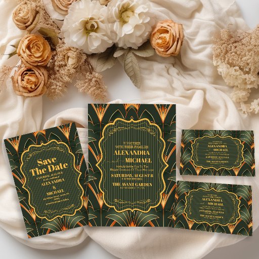 Green Elegant Geometric Art Deco Wedding Designt von Andreea Eremia