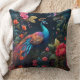 eleganter, farbenfroher Blue Pfau in einem schönen Blumengarten auf schwarzer KI-Kunst, GESCHAFFEN VON MINX267