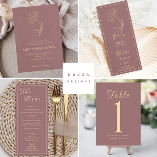 Elegante Gold Blume Typografie Dusty Rose Hochzeit Serviette