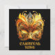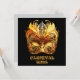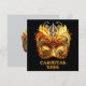 Eine verzierte Venezianische Maske zeichnet sich durch ein kompaktes Gold- und Schwarz-Design mit lebhaften gelben Federn und Goldprägung aus. Die Handwerkskunst zeigt elegante Blätter und lebhafte Farben.