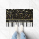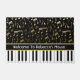 Eine elegante und stilvolle Begrüßungsmatte mit einem Design für den Pianisten oder Musiker mit goldfarbenen Noten und einer Klaviertastatur auf schwarzem Hintergrund mit goldfarbenem und schwarzem Streifen, um den Namen Ihrer Wahl hinzuzufügen, um ein einzigartiges personalisiertes Musikgeschenk für jeden Anlass zu schaffen