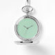 Ein zeitloser Klassiker neu erfunden - diese winzige grüne Taschenuhr verbindet Vintagen Charme mit modernem Raffinesse. Dieses elegante, silberfarbene Gehäuse und ein individualisierbares Minzgrün-Dial sind perfekt für Hochzeiten, Jubiläen, Firmengeschenke und besondere Anlässe geeignet. Das minimalistische Design bietet eine stilvolle und raffinierte Ästhetik, die es zu einem hervorragenden Accessoire für Damen und Herren macht. Personalisieren Sie es mit Initialen, einem Namen oder einer speziellen Nachricht, um einen einzigartigen Keepake zu erstellen. Egal, ob Sie einem formalen Outfit Eleganz verleihen oder einem hoch geschätzten Erbstück einen Riegel vorschieben, diese Taschenuhr ist der Inbegriff von Eleganz und Stil.