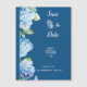 Mit dieser wunderschön gestalteten "Save the Date" Hochzeitskarte verkünden Sie Ihren ganz besonderen Tag im Stil. Mit zarten blauen Hydrangea-Blumen und einem eleganten Drehbuch auf sanftem, blauen Hintergrund Set diese Einladung einen romantischen Ton für Ihre Hochzeit im Oktober. Die Karte hebt das Hochzeitstag (Sonntag, 12.) und die Zeit (18.00 Uhr) hervor und macht es zum erstaunlichen und informativen Ereignis. Ideal für Paare, die eine Mischung aus Schönheit und Einfachheit in ihrer Hochzeitsarbeit suchen.