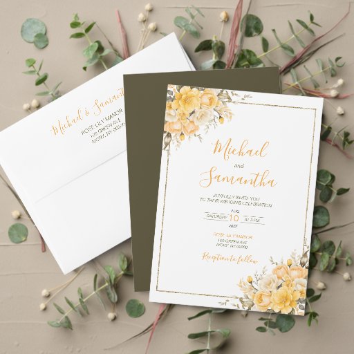 Elegante Hochzeiten in Gelb und Elfenbeinküste Einladung
