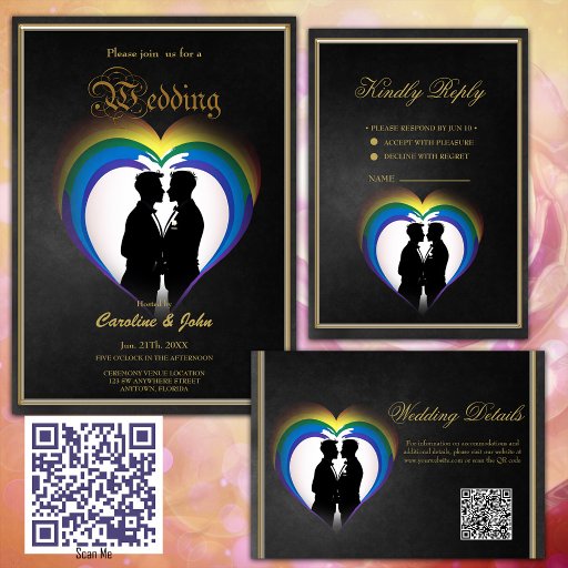 Elegante homosexuelle Silhouetten. Mit diesem exquisiten Hochzeitsdesign bringen Sie Ihre Liebe Geschichte zum Leben. Dieses bezaubernde Design zeigt anmutige schwule Silhouetten und bietet Ihnen und Ihrem Partner die Möglichkeit, die Feier Ihrer Liebe auf die schönste Weise zu teilen.
