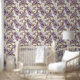 Elegante Imitate, goldfarben und hellviolette Blum Tapete