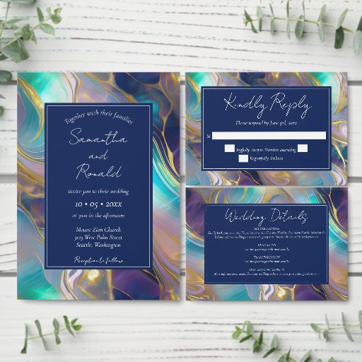 Elegant Faux Gold & Blue Opal Stone Wedding SuiteDesignt von Lola F