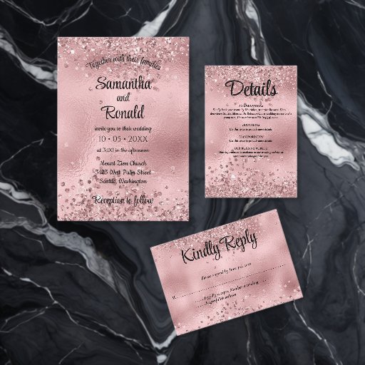 Elegant Faux Pink Glitter and Foil Wedding SuiteDesignt von Lola F