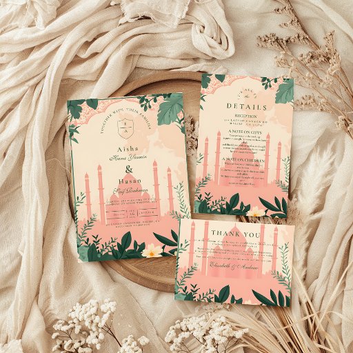 Elegante islamische Hochzeit in Flora RSVP Karte