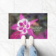 Finden Sie Freude in der einfachen Schönheit des Lebens Zitat Willkommenmatte mit rosa Columbine Blume Foto. Design von Jenn's Emporium.