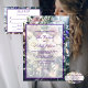Elegante Lila Blumen Hochzeit mit einem wunderschönen Strauß von Blume in sanften Farbtönen lila mit lila Rahmen und Text. Der erste Text enthält: die Braut- und Gräuelnamen, Hochzeitdatum, Uhrzeit, Ort, Anschrift und Empfang Note. Das Gegenteil ist ein lila Blumenstrauß. Um Ihre persönlichen Daten zu personalisieren, fügen Sie einfach Ihre Daten in unsere einfache Vorlage ein und ersetzen den Beispieltext. Schauen Sie sich unbedingt die gesamte Elegant Lila Floral Wedding Collection für die passende RSVP Card und andere passende Stationery and Accessories an.