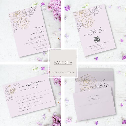 Elegant Lilac Gold Line Floral WeddingDesignt von Linda Lee