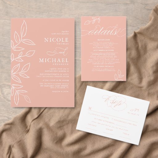 Elegant Melon Pink Leaves Wedding CollectionDesignt von Tina T