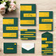 Die elegante Tischnummer in Grün und Gold eignet sich ideal für eine moderne Hochzeit und bietet eine elegante grüne Kalligraphie auf goldenen Streifen auf grünem Hintergrund.