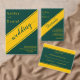 Dieses elegante, grüne und goldene Hochzeitsangebot eignet sich perfekt für eine moderne Hochzeit, das schlichte Design zeichnet sich durch elegante goldene Kalligraphie auf grünem Hintergrund aus.