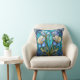 Moderner, farbenfroher Kissenprint mit einem Jugendstil-farbigen Look, der Iris-Blume in modernen, aquamarinen und pastellfarbenen lila Tönen darstellt.