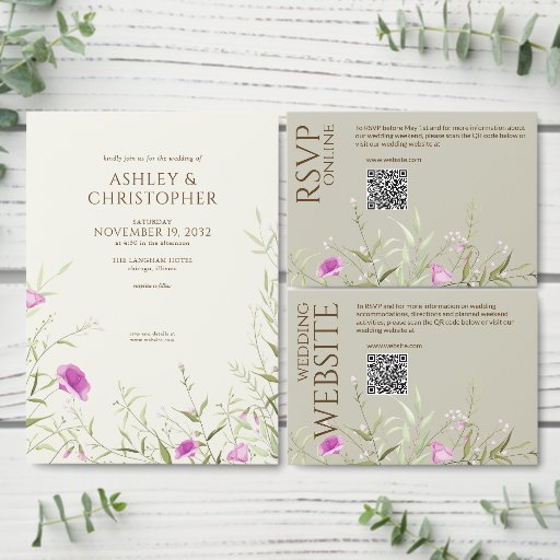 Elegante Moderne Wildblume White & Bronze Wedding Programm