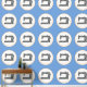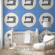 Elegante Nähmaschine Art Blue Orange Muster Tapete