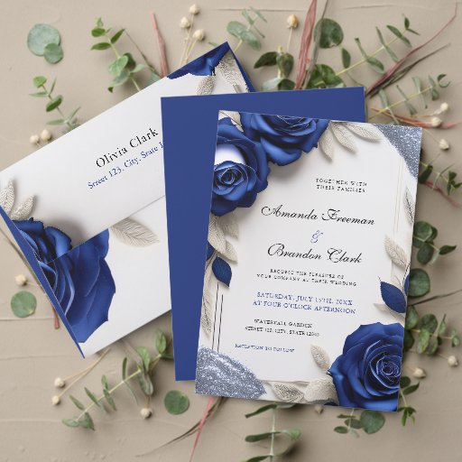 Elegante Navy Blue Rose & Silver Glitzer Hochzeit