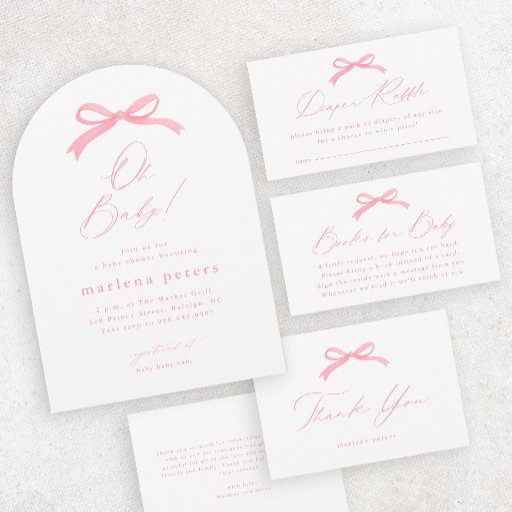 Elegante Rosa Bow Girls Baby Shower Einladung. Klicken Sie auf die Schaltfläche, um dieses Design anzupassen.