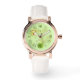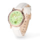 Eine stilvolle Pistachio grüne Armbanduhr, die Eleganz und Naturen mit feinen Blume und fallendem Blätter verbindet und einen zauberhaften, zarten Look schafft.